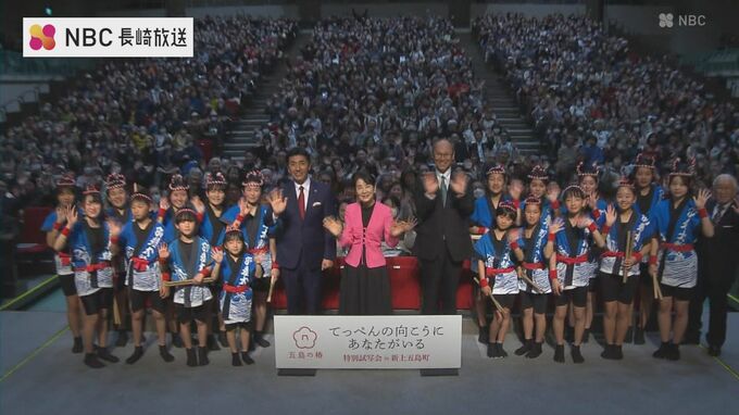 映画館がなく普段映画を見る機会が少ない長崎県新上五島町で8日、吉永小百合さんが主演する映画の上映会が開かれ、吉永さん本人が舞台あいさつを行いました。