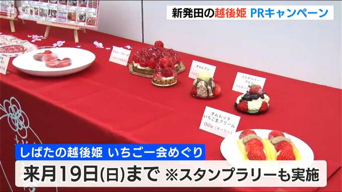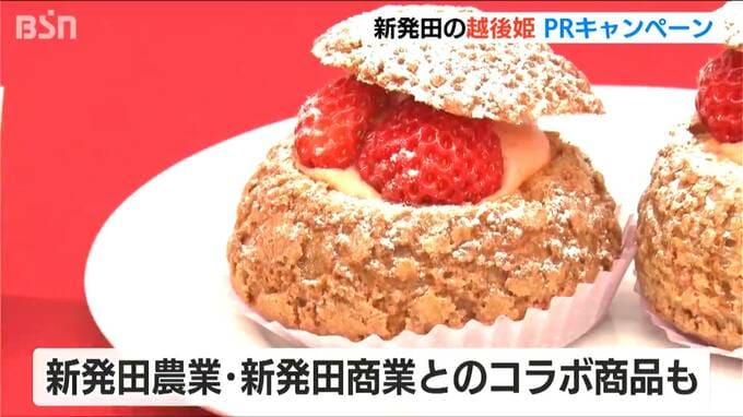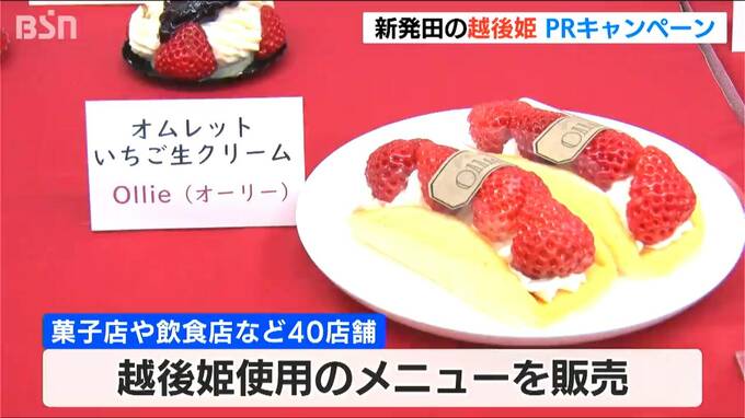 新発田産の越後姫の認知度向上と消費拡大などを目的に開催されているキャンペーンで、今年は市内の菓子店や飲食店など過去最多の40店舗が参加し、越後姫を使った自慢のメニューを販売しています。