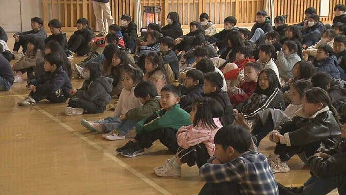 田村さん夫婦が、松山小学校で講演したのは、今回が初めて。講演には、全校児童約160人が出席し真剣に耳を傾けていました。松山小では3月11日にあわせて、毎年こうした集会を開いています。