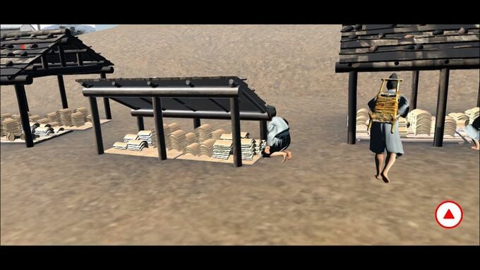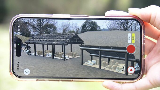 画面越しに鎌倉時代の世界が見えます。かつて、奈良の東大寺の瓦が作られた岡山市東区の窯跡で、拡張現実「AR」によって当時の様子が再現されています。