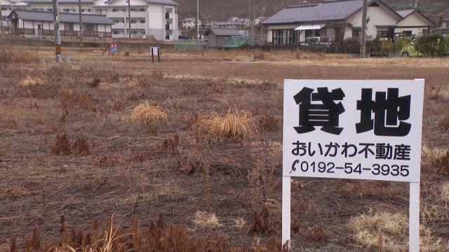 かさ上げされた土地の利用率は、半分程度。売地や貸地の看板が目立ちます。