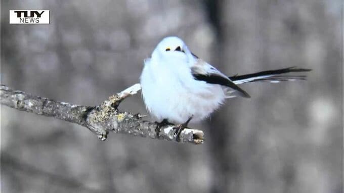 全長およそ14センチと日本に生息する野鳥の中で2番目に小さいとされるこのシマエナガ。その可愛らしい姿から「雪の妖精」とも呼ばれています。