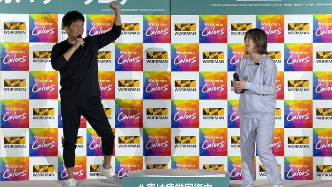 吉田沙保里さんと武井壮さんが10日、WORKMAN「MEDIHEAL 新CM発表会」に登壇しました。