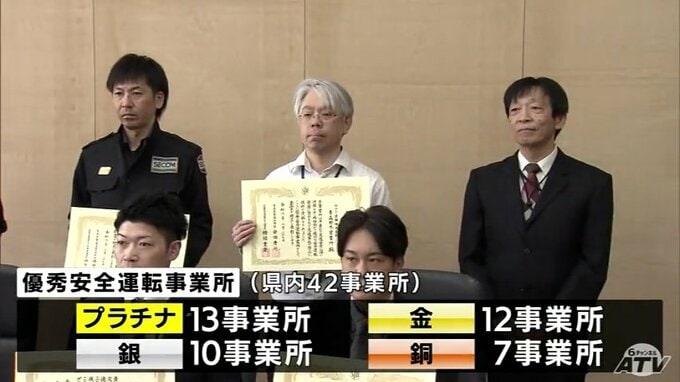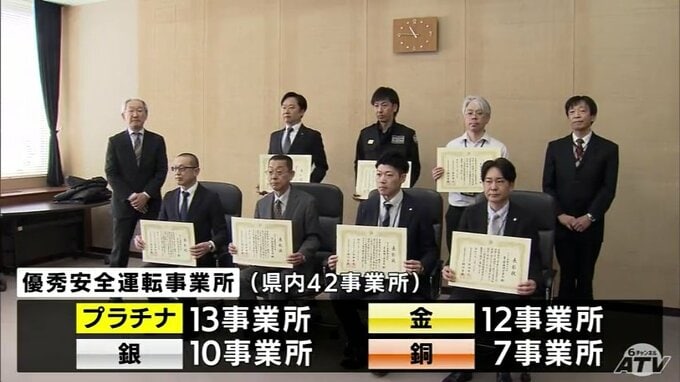 交通事故の抑止に貢献した青森県内42の事業所を「優秀安全運転事業所」に認定 県警察本部から表彰状 なかでも優秀な事業所に贈られる「プラチナ賞」は13事業所 青森テレビ 2026年3月10日(火) 14:00 国内