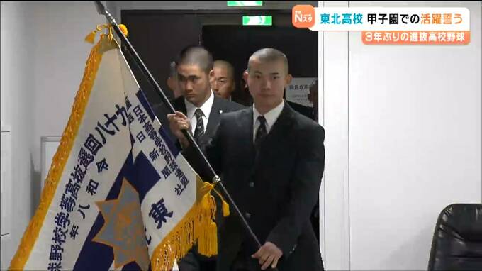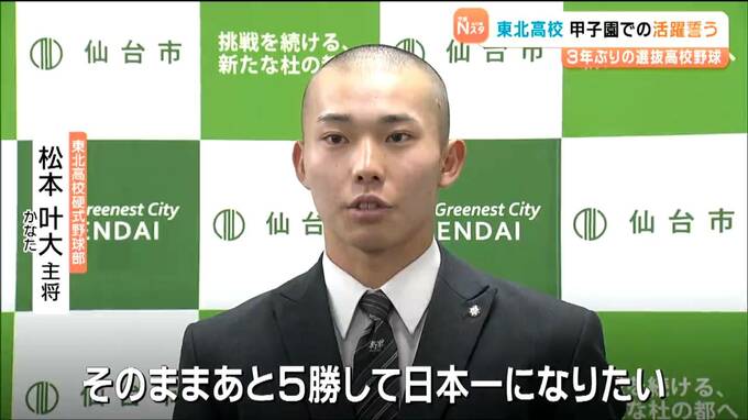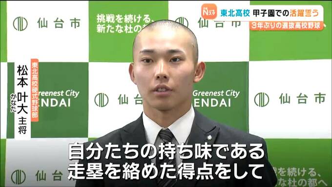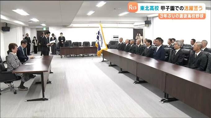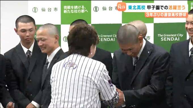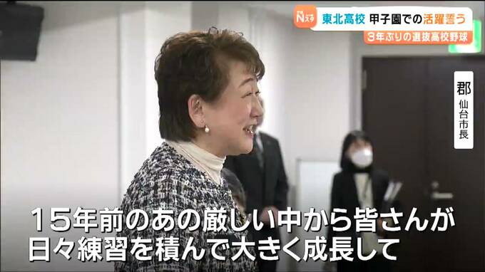 19日に開幕する春の選抜高校野球大会に出場する東北高校の硬式野球部が、10日に郡仙台市長を訪ね、甲子園での活躍を誓いました。