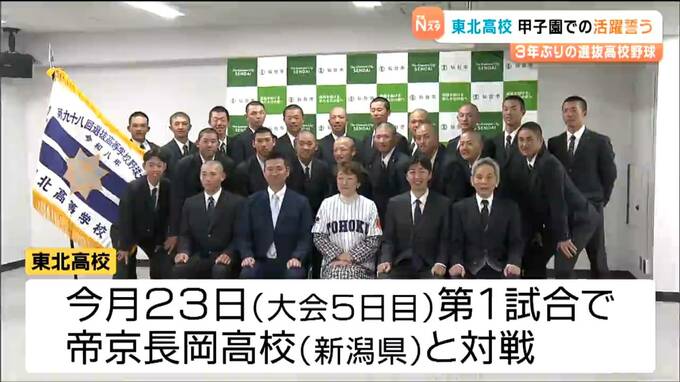 3年ぶり21回目の出場となる東北高校。大会5日目の3月23日に第1試合で新潟県の帝京長岡高校と対戦します。