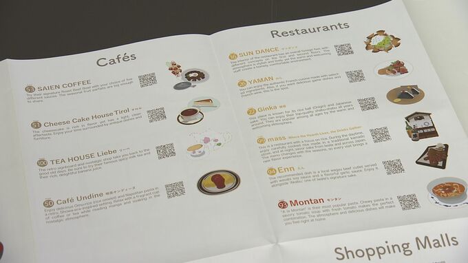 開運橋から桜山までのエリアの飲食店やホテルなど、123か所が英語で掲載されています。