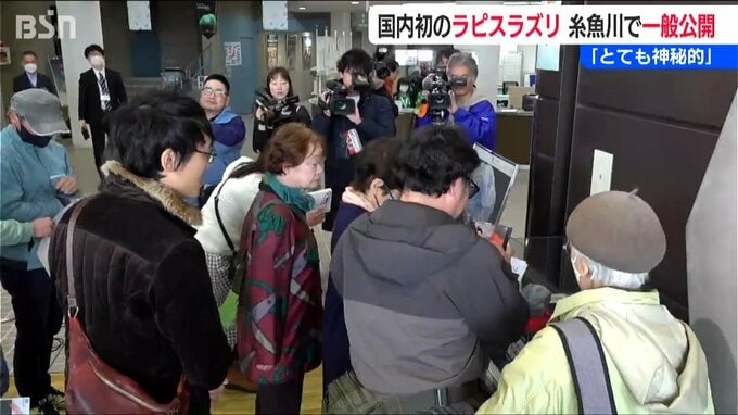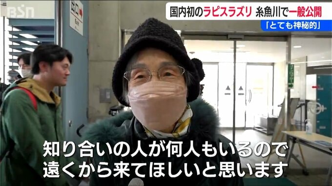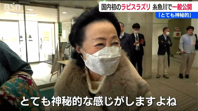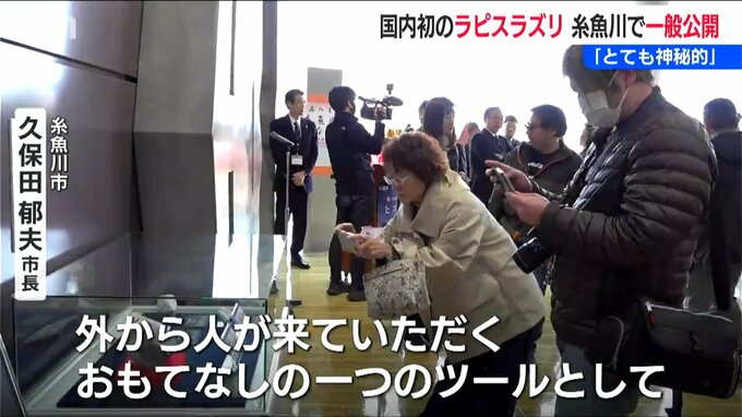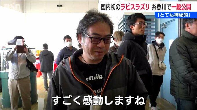 公開初日となった7日、国内初のラピスラズリを一目見ようと地元の住民らが駆け付けました。