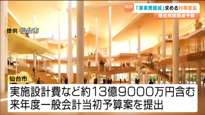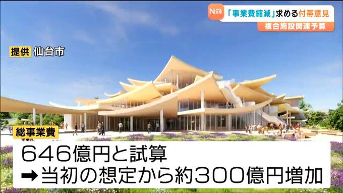 事業費の上振れなどで異論が相次ぐ音楽ホールと震災メモリアル拠点の複合施設を巡り、仙台市議会は「事業費の縮減に最大限努めること」などを求める意見をつけて、整備計画の関連費用を含む予算案を委員会可決しました。
