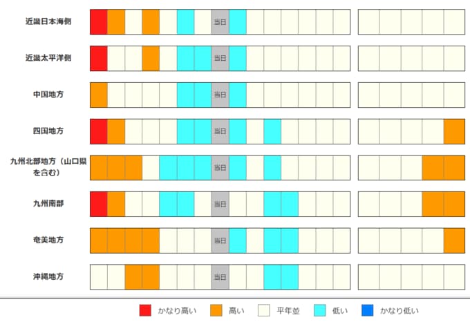 沖縄・奄美の気温は、14日頃までは低いですが、その後は平年並の日が多いでしょう。