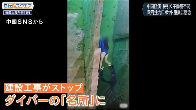 首都・北京の中心部でも工事がストップしたビルが目につき、中国メディアによると、広西チワン族自治区にある建設工事がストップしたビルが“ダイバーの名所”になっているという。ビルの地下に水がたまり、そこに潜って楽しんでいるのだ。