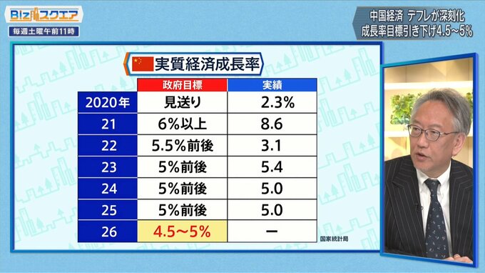 また、中国政府は25年まで3年連続で「5%前後」としていた【経済成長率の目標】を「4.5~5%」に引き下げた。