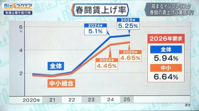 ▼26年要求【全体5.94%】【中小6.64%】※連合5日発表