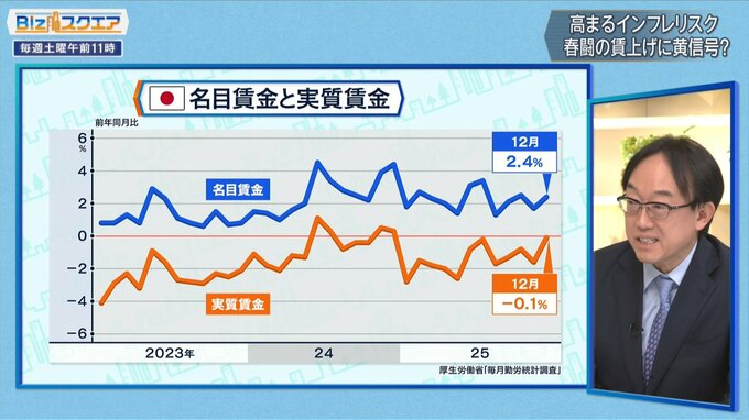 ――今、日本では実質賃金のプラス化が一番の焦点。物価が落ち着いてくればプラスになると期待されているが、物価が上昇する、名目賃金も予想ほど上がらないとなると、実質賃金のプラス化が遠のく