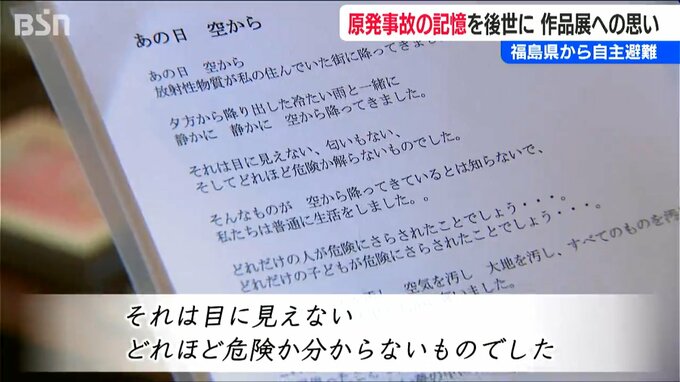 東日本大震災の発生から11日で15年。「地震が来るとフラッシュバックする」福島県から自主避難している女性作家が新潟市にいます。原発事故の記憶を後世に繋ぐ…作品展に込められた思いを取材しました。