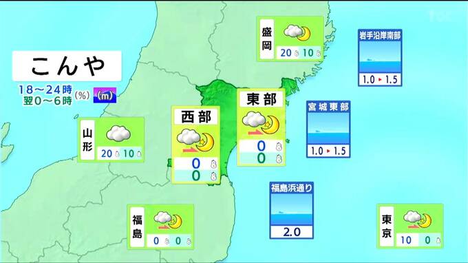 晴れや曇りで、雨や雪の降る所はないでしょう。海上では北寄りの風がやや強く吹く見込みです。