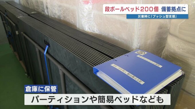 倉庫には、他にもパーティションや簡易ベッドなどが保管され、災害時に活用されることになります。