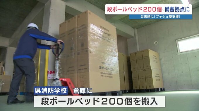 このうち、益城町にある熊本県消防学校の倉庫に今日(3月10日)、避難所などで使用する「段ボールベッド」200個が運び込まれました。
