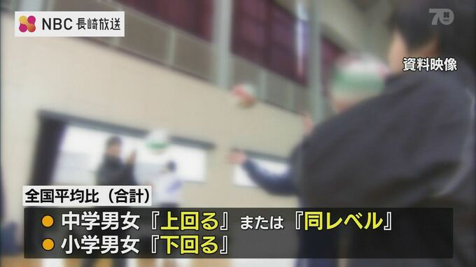 小中学年を対象とした全国体力・運動能力調査の結果、長崎県は小学男女で全国平均を下回りました。