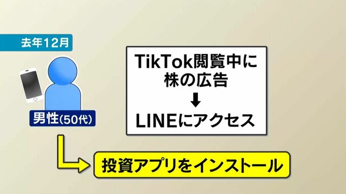 また、50代の男性は去年12月、TikTokを見ていた際に株の広告が表示され、指定されたLINEにアクセス。