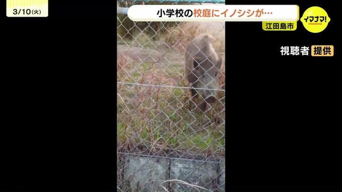 切串小学校によりますと、今年に入ってからもグラウンドでイノシシが目撃されていて、日頃から児童に注意を呼びかけているということです。