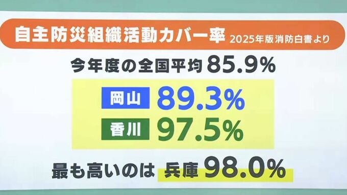 香川県が高い理由の一つとして、香川県によりますと、2006年に「香川県防災対策基本条例」を施行して以降、自主防災組織の結成や活動の促進に取り組んできたことで、また岡山県は、2017年の西日本豪雨以降組織率が高まったということです。では、その自主防災組織とはどんなものなのか、取材してきました。