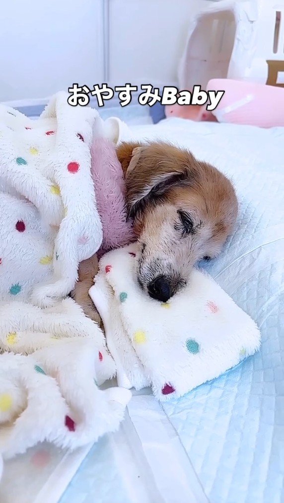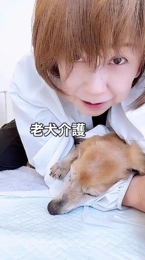 投稿された動画では、大場さんが心菜ちゃんのグル活(認知症などによる旋回運動)補助している最中に、愛犬が突然腕枕で眠ってしまう様子が収められています。「ここなちゃん、グルカツをするのを補助してあげてたら、急にパタンと、あの、私の腕で、腕枕で寝ちゃいました」と語りかける大場さんの声には、日々の疲れを感じさせない慈しみがあふれています。
