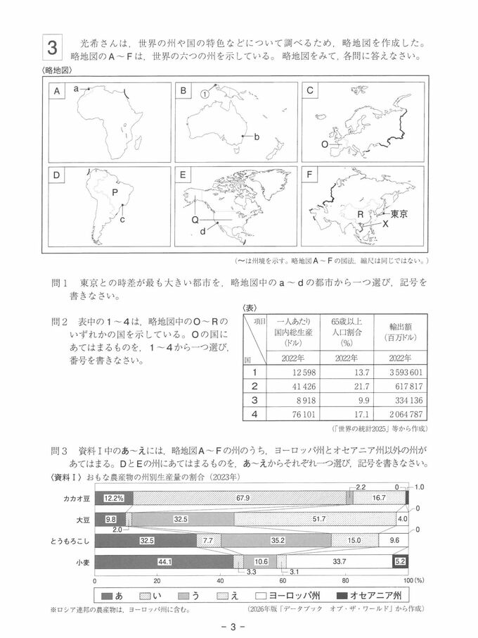 福岡県公立高校入試『社会』試験問題・正答(令和8年度・2026年度)