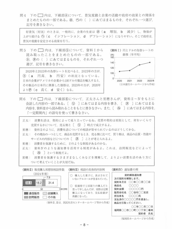 福岡県公立高校入試『社会』試験問題・正答(令和8年度・2026年度)