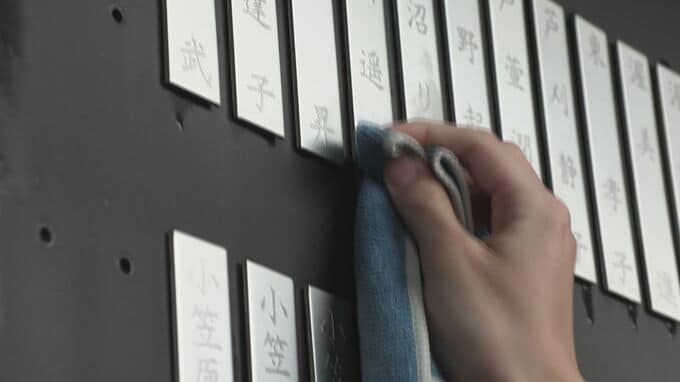 えそのあと3年生は釜石市の追悼施設釜石祈りのパークに向かい、震災の犠牲者の名前が刻まれた芳名板をきれいに磨きました。