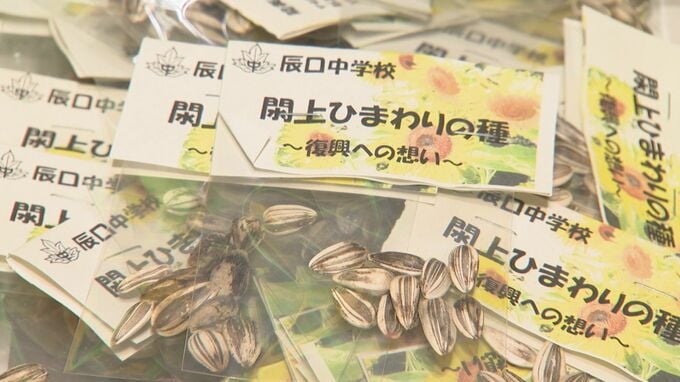 災害の記憶を風化させないために、宮城県のひまわりの種を配る活動に、石川県能美市の中学生たちが取り組みました。