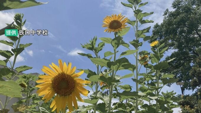 東日本大震災で甚大な被害を受けた宮城県名取市閖上地区に咲いていた、ひまわりの種を辰口中学校が譲り受け、2013年から毎年、全校生徒で育てています。