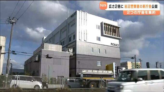 2月に完成した岩沼警察署の新庁舎が、10日に報道向けに公開されました。2つに分かれている庁舎は1つに集約され、これまでの2倍の広さに生まれ変わりました。岩沼警察署の新庁舎です。元の北側庁舎と比べてもその大…