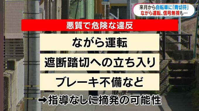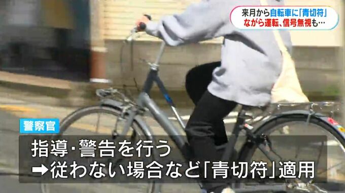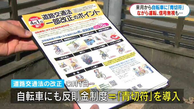(県警本部・上牧瀬肇 交通総合対策官)「4月1日以降、自転車を運転して一定の交通違反をした場合は検挙されるおそれがあるので、自転車を運転する場合は交通ルールをしっかり守って運転してください」