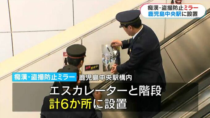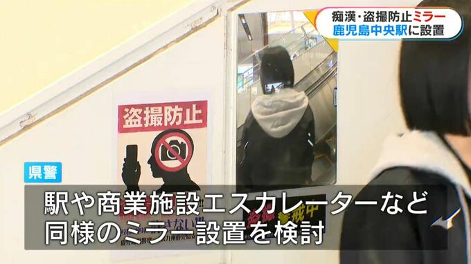 鹿児島中央駅のエスカレーターの壁に痴漢・盗撮を防止するミラーが設置されました。JR九州では博多駅に次ぐ2例目の取り組みです。