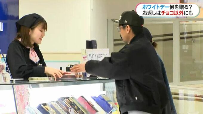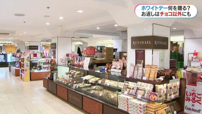 ホワイトデーのお返し選びか、男性客が多く見られました。