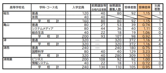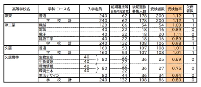 三重県立高校入試2026 後期選抜の受験倍率 桑名・理数2.53倍 四日市・国際科学2.51倍 神戸・理数2.83倍など 全校掲載・一覧