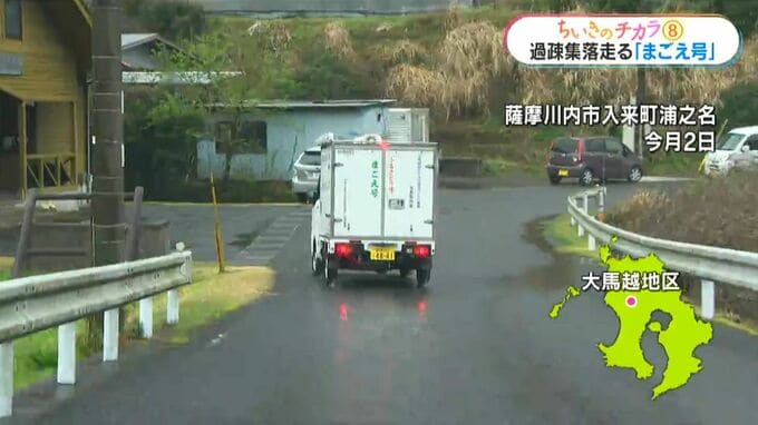 軽快な音楽を鳴らしながら走る車。薩摩川内市入来町浦之名の大馬越地区を走る移動販売車「まごえ号」です。
