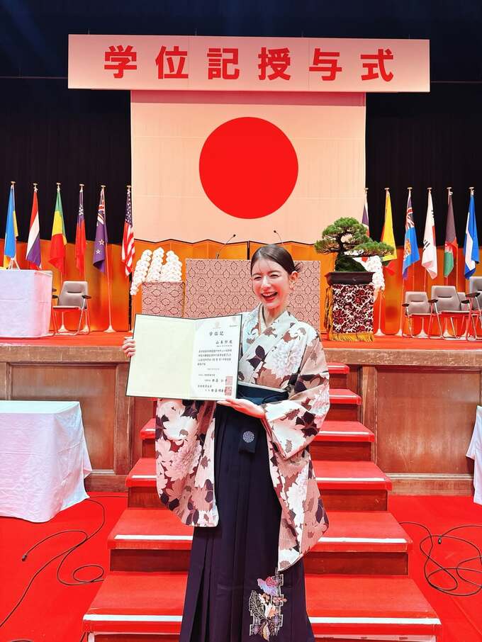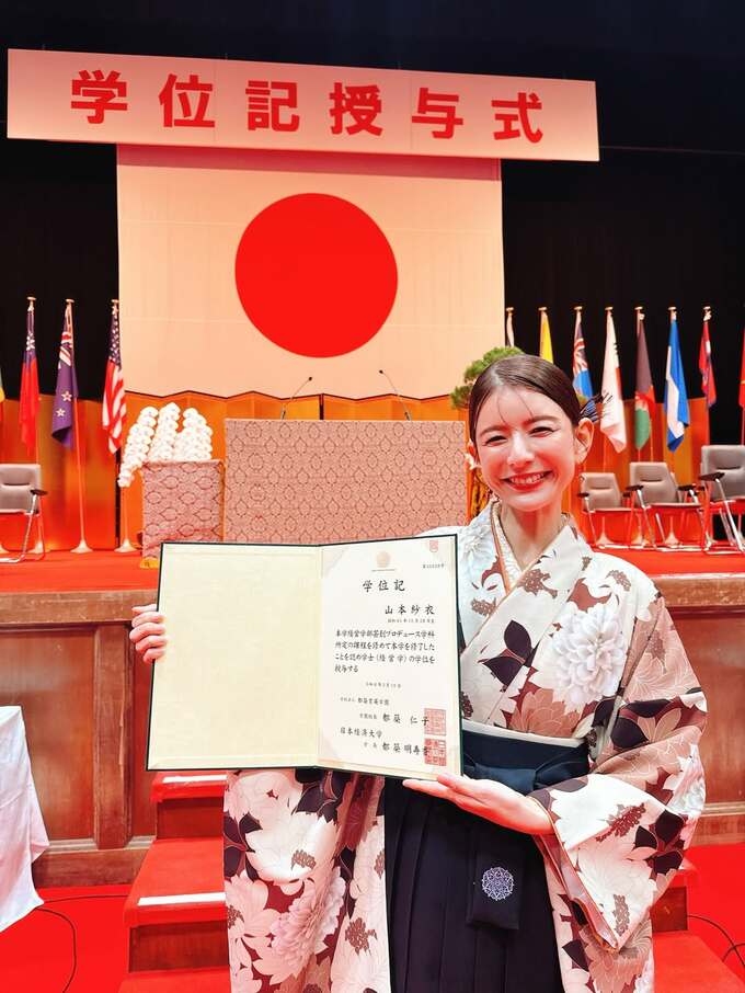 袴姿で卒業式に臨んだスザンヌさんは、「またここから、新しいスタート!学んだことを糧にして成長していきたいです」と、今後への意気込みを語っています。
