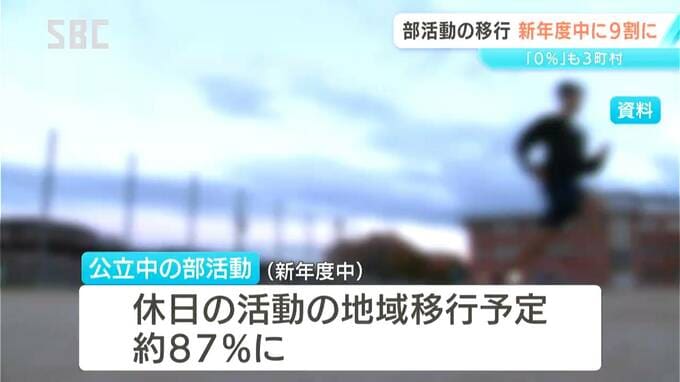 県教委のまとめによりますと、公立中学校で新年度中に休日の活動を地域に移行する予定の部活は、全体のおよそ87パーセントに上りました。
