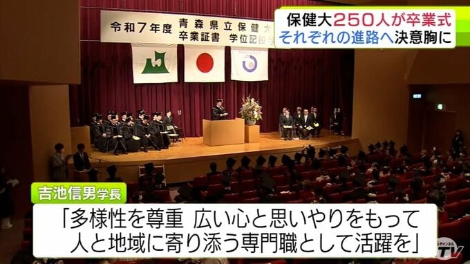3. 青森県立保健大学で卒業式 250人の卒業生が新生活への思いを胸に学び舎をあとに「働いてがんばって、いずれ社会のために力になれれば」