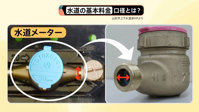 「口径」とは、道路など地下に水道管が埋まっており、そこから各家庭に水道管が伸びています。そして水道メーターにつながるのですが、水道メーターにある水道管の直径を言います。