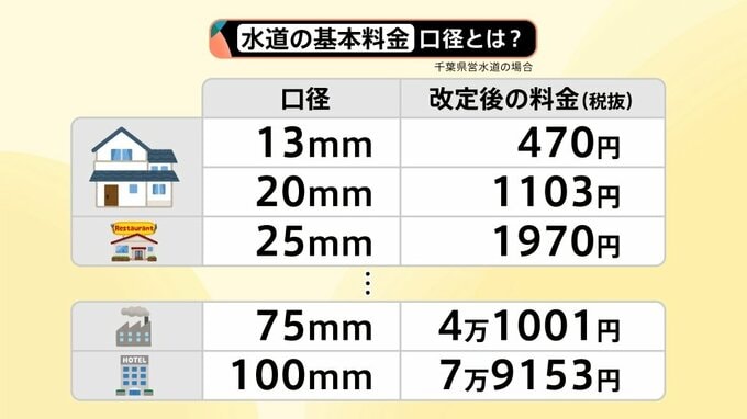 【水道の基本料金】(口径:改定後の税抜き料金)※千葉県営水道の場合