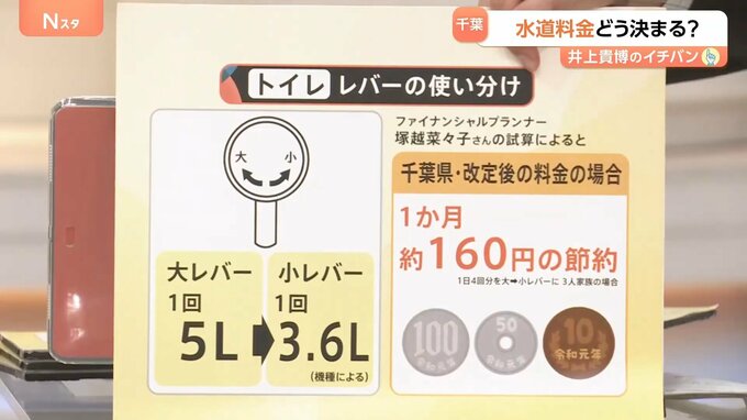 使い分けるだけで、千葉県・改定後の料金の場合、1か月約160円の節約になります(1日4回分を大→小レバーに 3人家族の場合)。