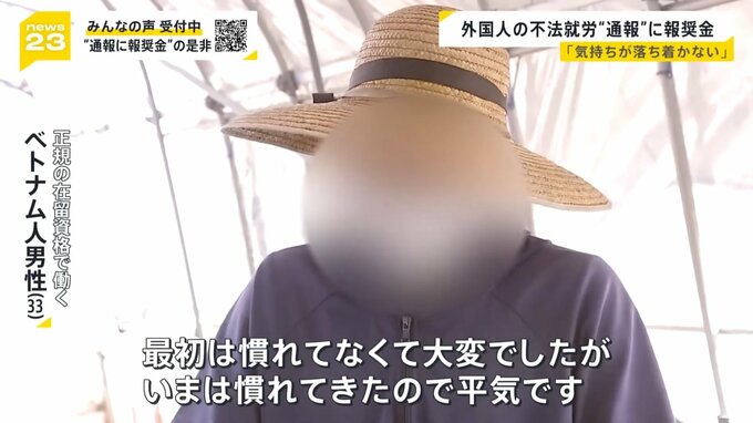 男性が話す“制度”とは、不法就労の外国人に関する情報を市民から募り、逮捕などにつながれば1万円程度が支払われる「通報報奨金制度」のこと。