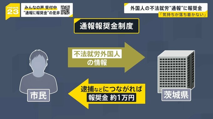 不法就労する外国人の情報を募り、逮捕などにつながれば1万円程度の報奨金。茨城県が導入を目指す新たな“通報制度”をめぐり、差別や偏見を招くのではないかと懸念が広がっています。