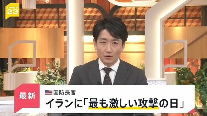 また、ヘグセス長官は、「イランが学校などの民間施設からミサイルを発射している」と非難し、さらに「最も激しい攻撃の日となるだろう。最も多くの戦闘機と爆撃機による、最も激しい攻撃が行われる」と述べ、さらに攻撃を強める姿勢を強調しました。