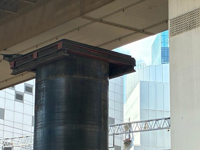 下水道工事の影響でパイプが地中からせり上がったか…「コンクリートが落ちてきている」大阪・北区 北摂と結ぶ“大動脈”新御堂筋の一部区間が通行止めで大渋滞 毎日放送 2026年3月11日(水) 09:41 国内 ▼地下から巨大な柱が出現? 通行止め 高架の先に見える柱は… 地面を突き破ってせり出したか アスファルトが割れている 歩道 車道とも通行止め 高さがすこし下がっているようだ