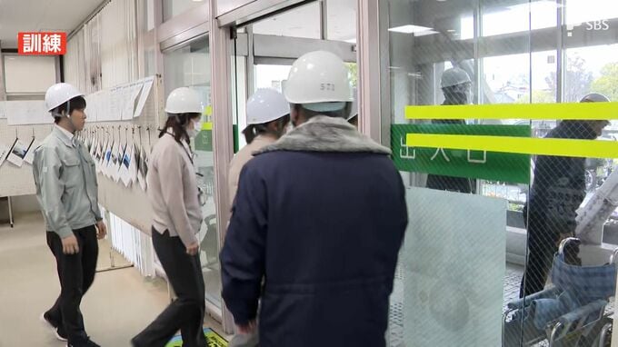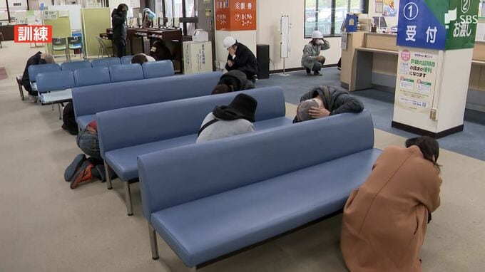 三島市役所では、職員が身の安全を確保したあと、外へ避難する流れを確認しました。
