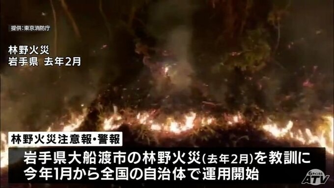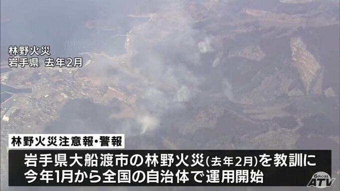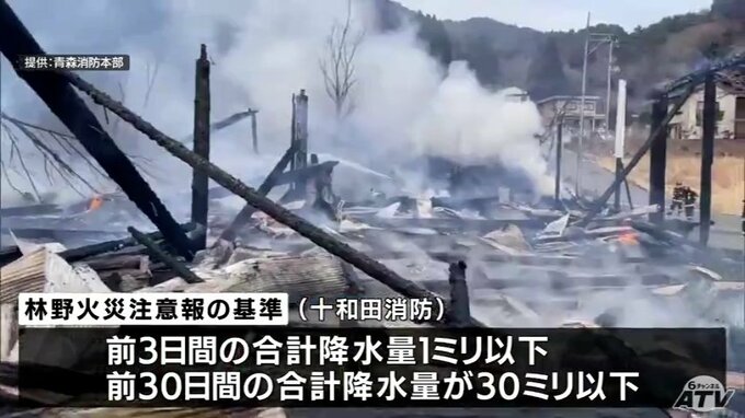 「林野火災注意報」青森県内では初めて発表 十和田市と六戸町に 十和田消防本部が火の取り扱いへの注意呼びかける 青森テレビ 2026年3月11日(水) 14:10 国内 【画像】2025年2月に発生の岩手県大船渡市での林野火災 ※リンクからご覧いただけます